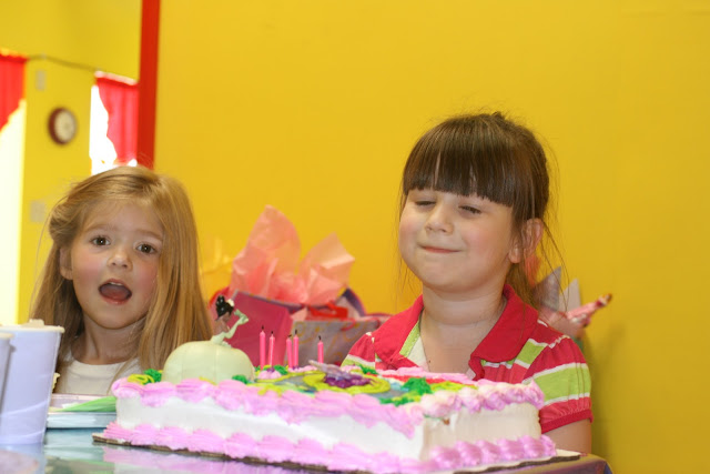 Whatever party Emily goes to, she has to sit by the birthday girl or boy. Sometimes it doesn't always workout for her, but today it did and she was all smiles.